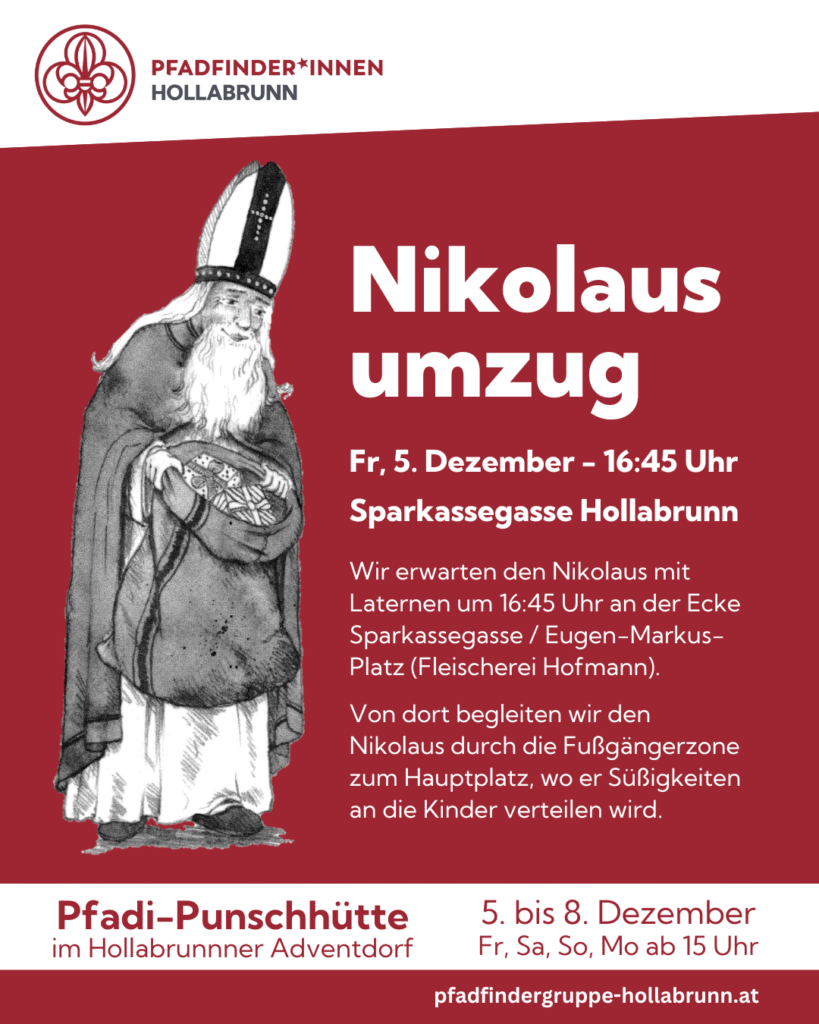 Am Freitag den 5. Dezember findet wieder unser Nikolausumzug durch die Hollabrunner Fußgängerzone statt!